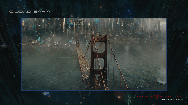 Ciudad Bahía (Bay City) ha prosperado hasta convertirse en una de las principales megápolis de la Tierra. La antigua San Francisco ha fagocitado todas las localidades y zonas residenciales circundantes. Aún quedan algunos vestigios de su pasado como el Golden Gate y el Puente de la Bahía, si bien ahora ambos están atestados de contenedores habitables, consecuencia de la llegada de los vehículos personales aéreos. La gran megápolis es un lugar opresivo desde el punto de vista estético y funcional, con enormes rascacielos que se elevan cientos de pisos por el aire, sumiendo las zonas bajas en la penumbra.