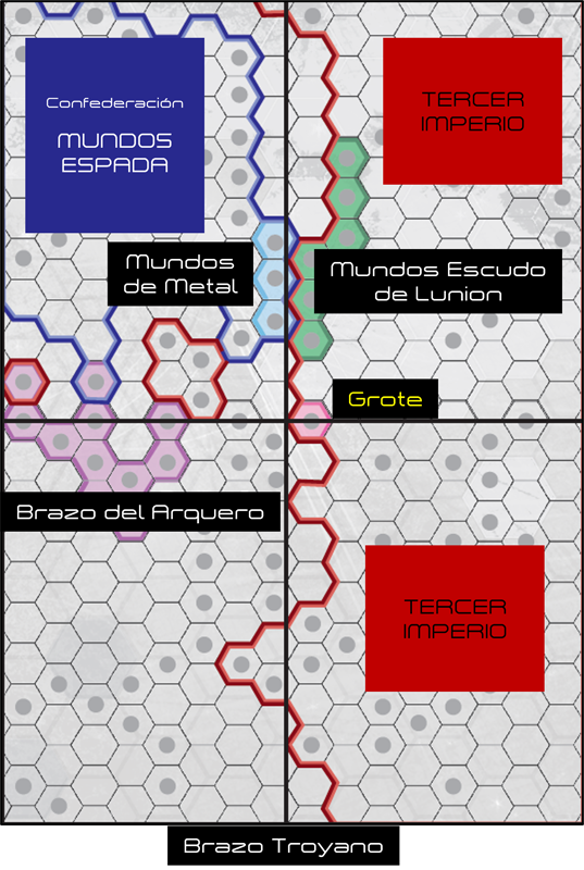 El Brazo del Arquero era una zona ultra-fronteriza de sistemas con sus propios intereses. Colindaba hacia el núcleo con los territoriales y orgullosos Mundos Espada y hacia el borde con el Brazo Troyano, conglomerado efervescente de sistemas independientes surgidos tras la caída del malogrado Imperio Sindaliano. Los territorios eran menos cívicos, menos evolucionados, menos reglamentarios, menos estructurados, menos protectores, y con menor desarrollo industrial y tecnológico. Sin embargo, por eso mismo eran lugares de oportunidades para quiénes supieran manejarse entre sus riesgos. Además, se acompañaba de la épica y el misticismo de las ruinas de aquella gran civilización perdida.